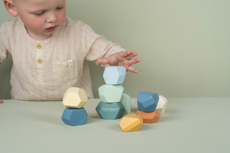 OverzichtStapelen, balanceren en bouwen! Begin maar met bouwen en kijk hoe indrukwekkend je torens en sculpturen zijn! De 10 houten stapelstenen hebben elk een eigen unieke vorm, kleur en gewicht. Zo is elk bouwwerk dat je maakt uniek. Deze speelse stenen in boskleuren spreken tot de verbeelding van je kleintje. Het is niet alleen leuk en uitdagend om met deze ongelijke stenen een toren te bouwen, het is ook nog eens spannend! Blijft de toren staan of valt hij om? Het spelen van dit stapel- en balanceerspel bevordert de hand-oogcoördinatie en probleemoplossende vaardigheden, terwijl je kindje zich urenlang vermaakt!
